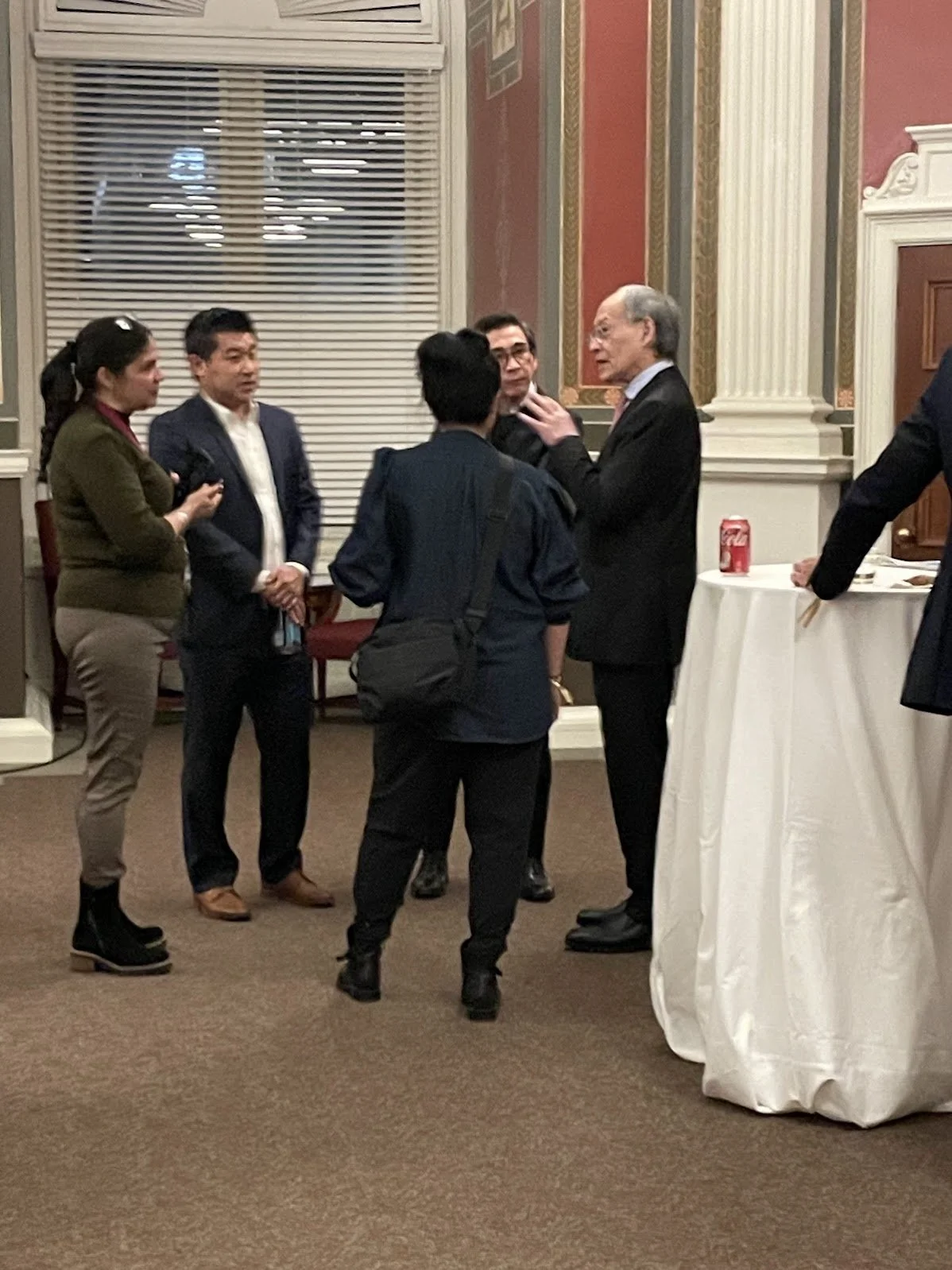 Arthur Sze (right) amid supporters at the reception.