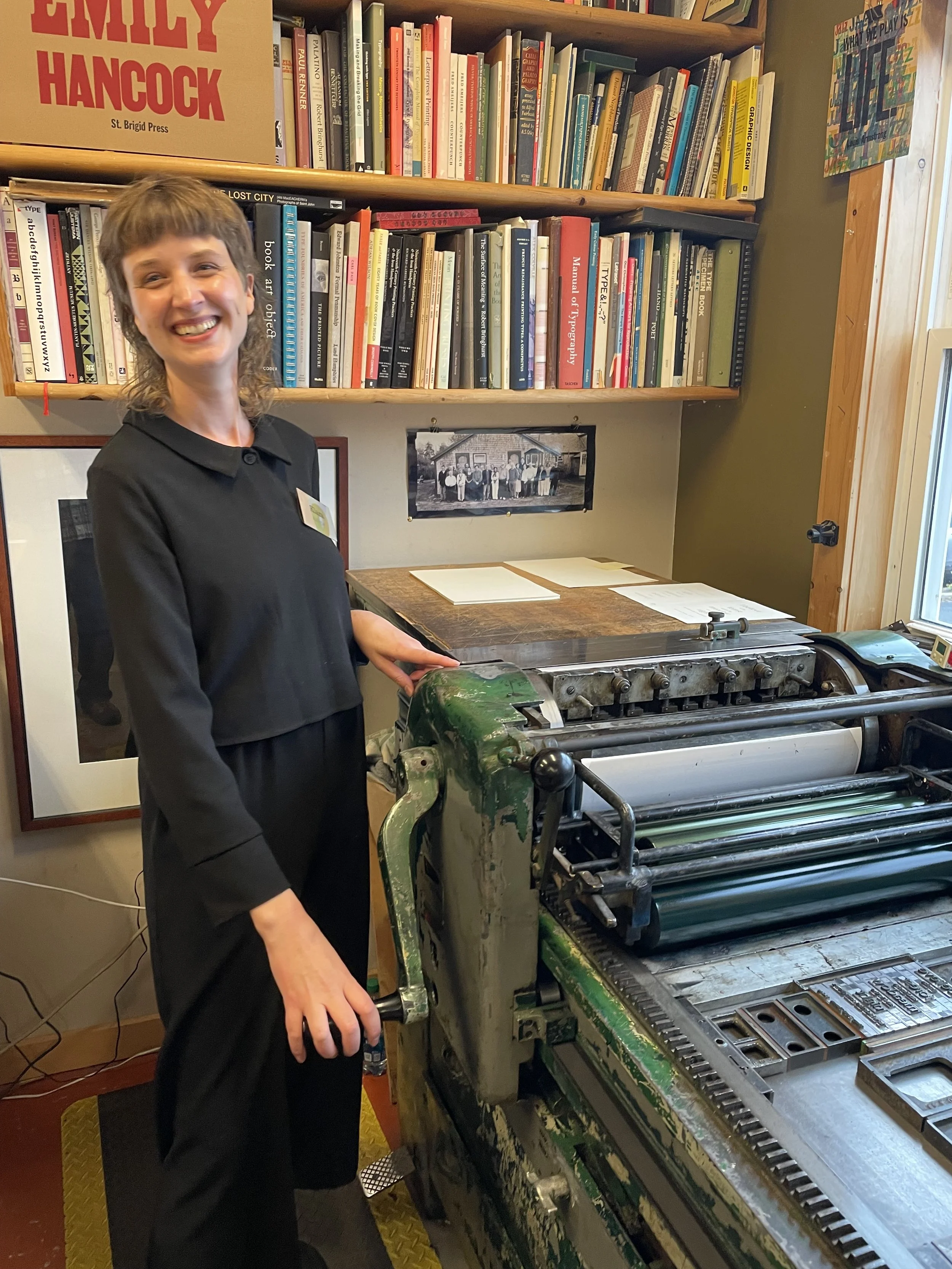 Klara du Plessis is a poet, literary curator, and artist-scholar from Montreal. And she was my most excellent assistant during the open house. We often had a long line of folks waiting to try their hand at printing at the press, and Klara was simultaneously traffic director, printing technique explainer, community engager, and all around joyful presence.