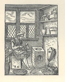 A typecaster of centuries past, pouring molten metal into a mould to cast new letters. (Courtesy of the The University of Manchester Library.)